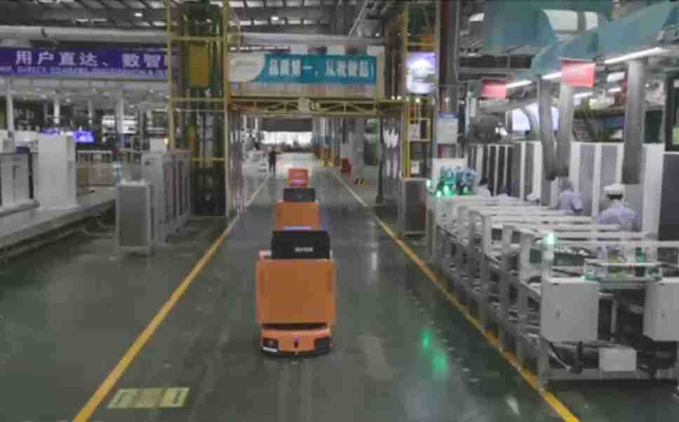 为车载冰箱物流配送打造的智能解决方案,,,包含产中物流通过潜伏举升AMR搬运至线边,,产后成品物流智能仓储,,,流程包含产中物流智能齐套入库,,,线边安灯叫料AMR智能配送至线边,,成品入库、、、出库,,,通过无人堆高车机器人,,,,智能仓储管理替代人工作业管理,,,,实现更高存储、、更高效率、、更具柔性化的解决方案。。。