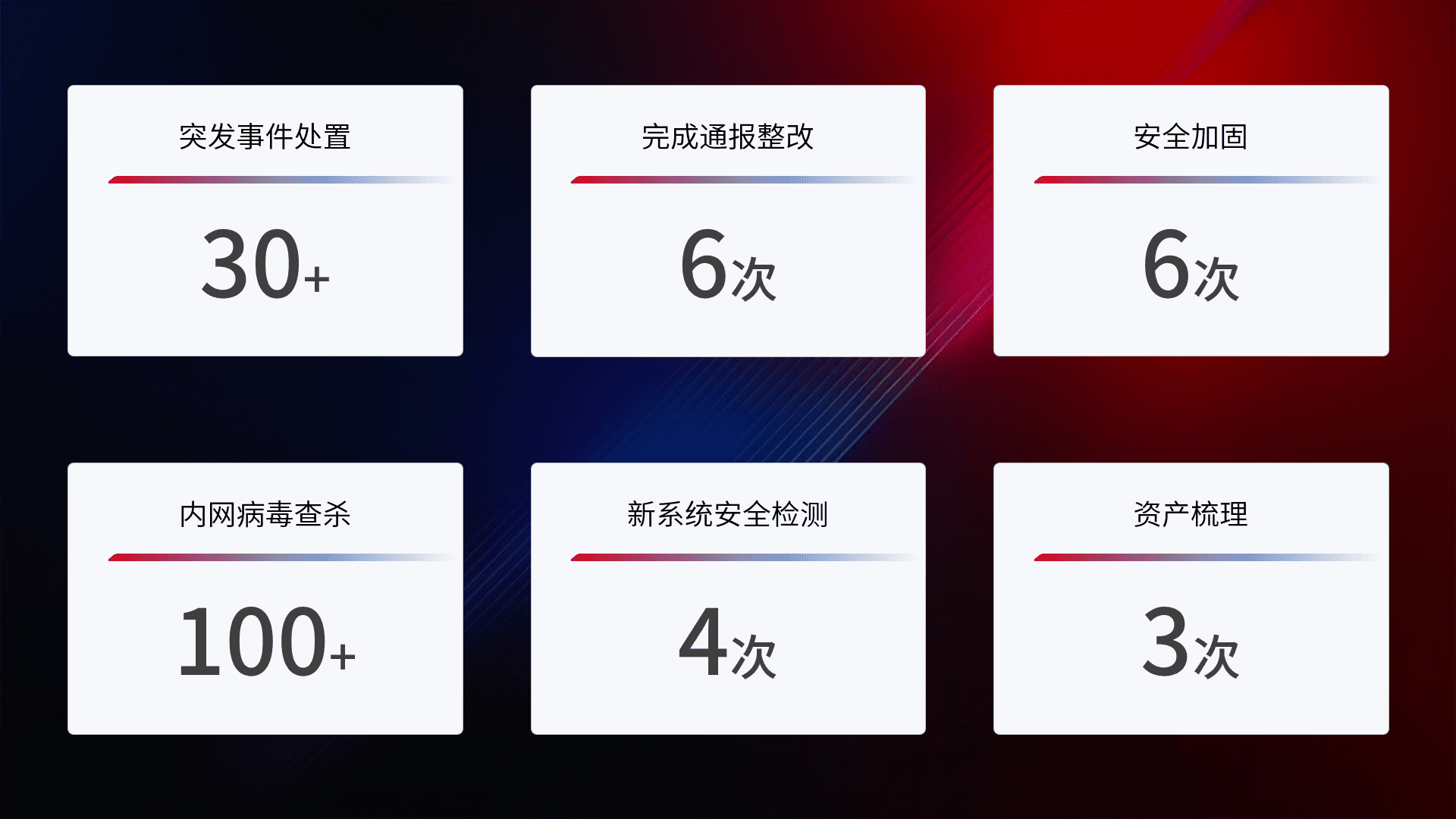 网络安全加固与风险管理:通过技术加固手段,,如加强区域隔离,,,缩减攻击内网横向移动的范围;优化现有网络安全管理制度,,,降低网络威胁暴露面,,,减少被黑客攻击的可能性。。